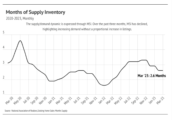 Months of Supply Inventory has declined significantly in 2023, and sellers are receiving a greater percentage of asking price, both of which highlight an increasingly competitive environment for buyers.