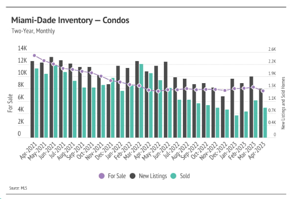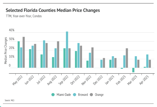 Year to date, median single-family home and condo prices are up across markets, indicating that the lack of new listings is driving pricing despite higher mortgage rates. Notably, single-family home prices in Miami-Dade County and condo prices in Broward County both reached record highs in April.
